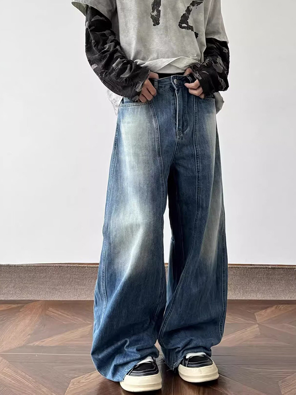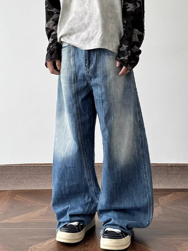 / American Retro Washed Lightning Pattern Loose Jeans