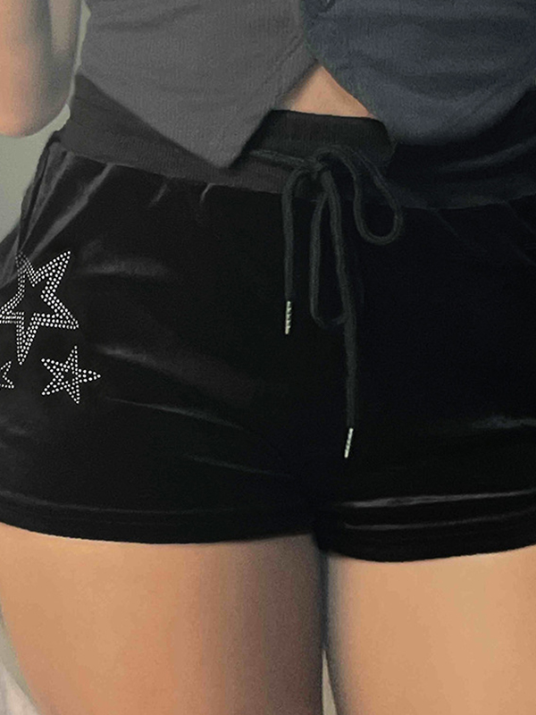 Y2K Hot Diamond Pentagram Velvet Shorts