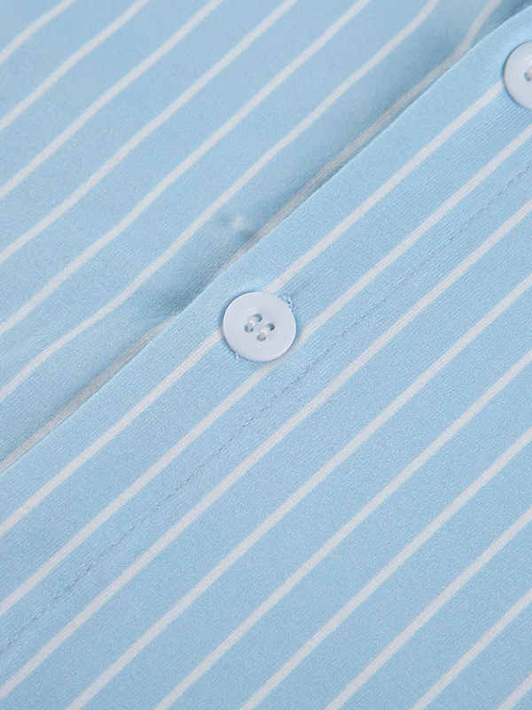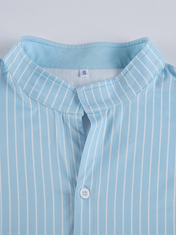 Blue And White Striped Slim Fit Short Sleeves Shirts quantity
