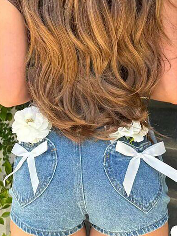 Bow Pocket Washed Denim Shorts