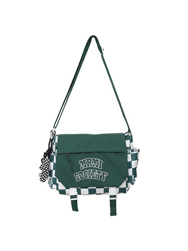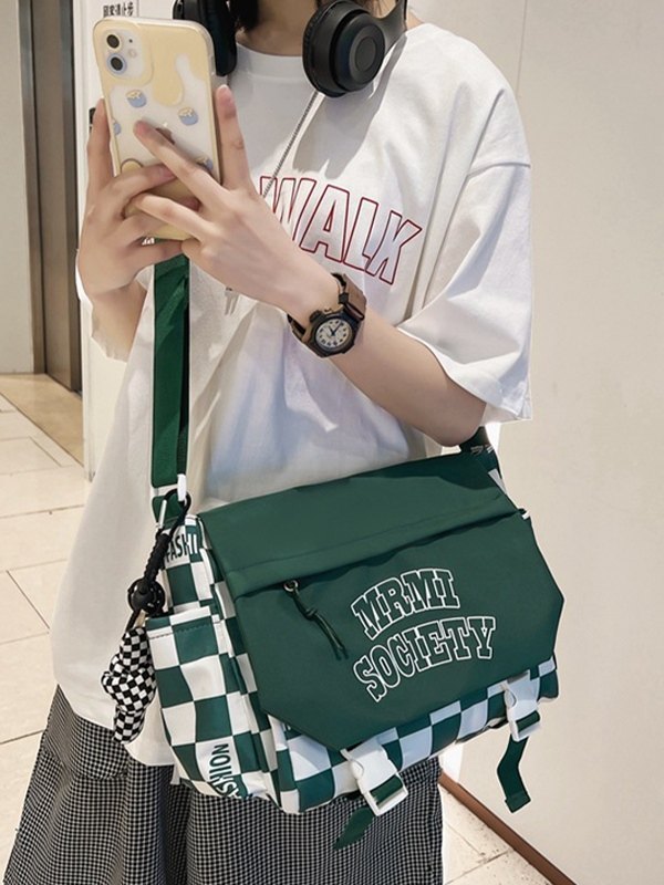 / Buckle Strap Checkered Nylon Crossbody Bag
