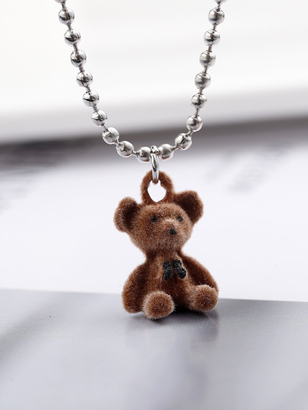 Cartoon Bear Pendant Beads Long Necklace