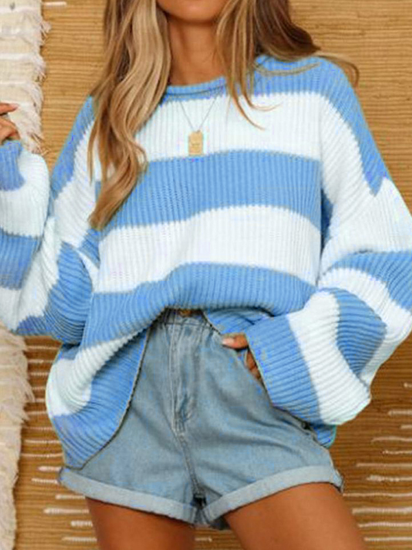 Casual Rib Stripe Baggy Knit Sweater quantity