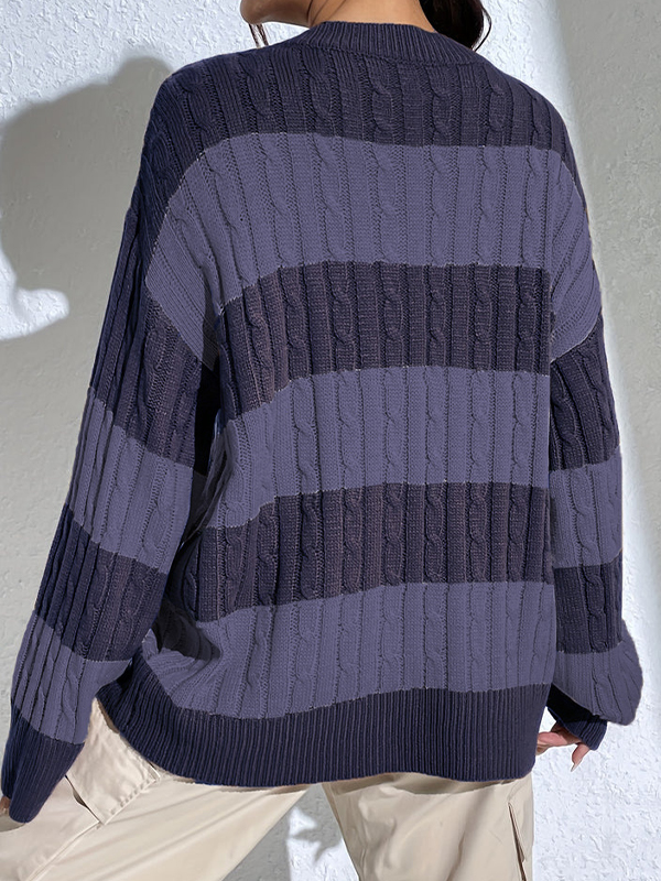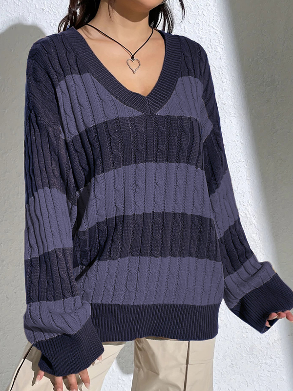 / Casual Stripe Print Oversized Long Sleeve Sweaters