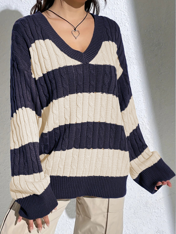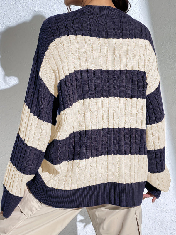 / Casual Stripe Print Oversized Long Sleeve Sweaters