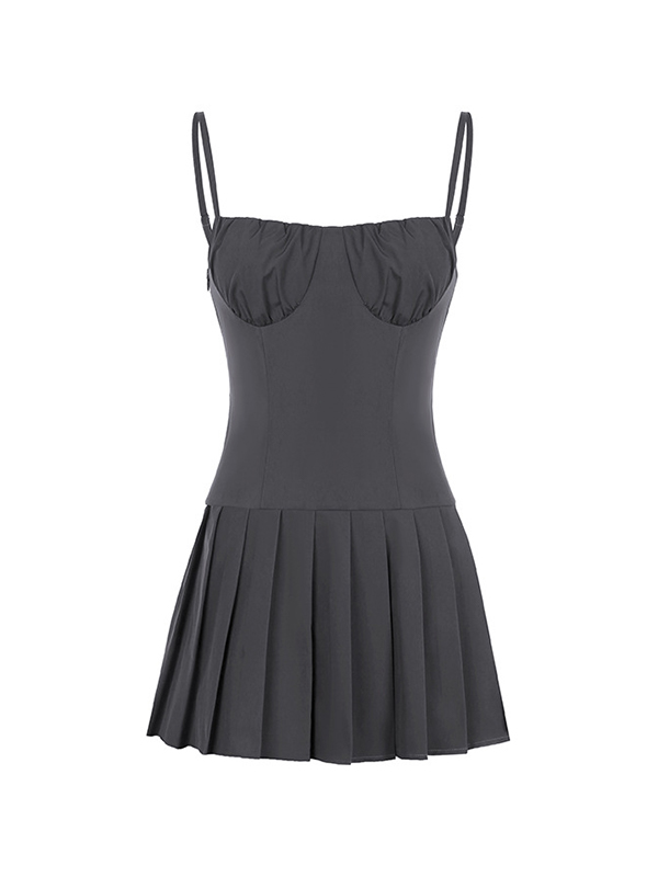 / Chest-Shaped Pleated One-Line Neck Strap Mini Dress