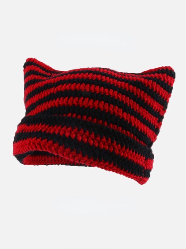 Ear Design Contrast Striped Beanie Hat