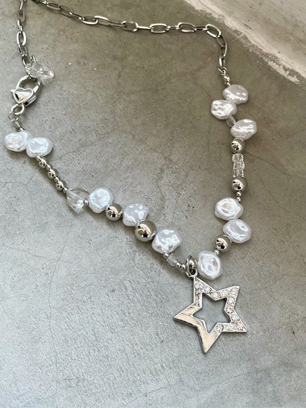 Rhinestone Star Beads Chain Necklace