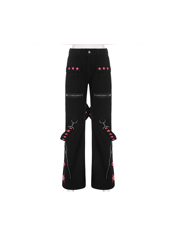 / Contrast Color Ribbon Metal Decoration Cargo Jeans