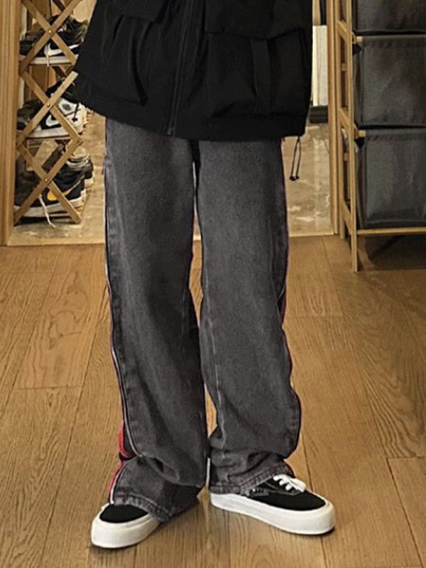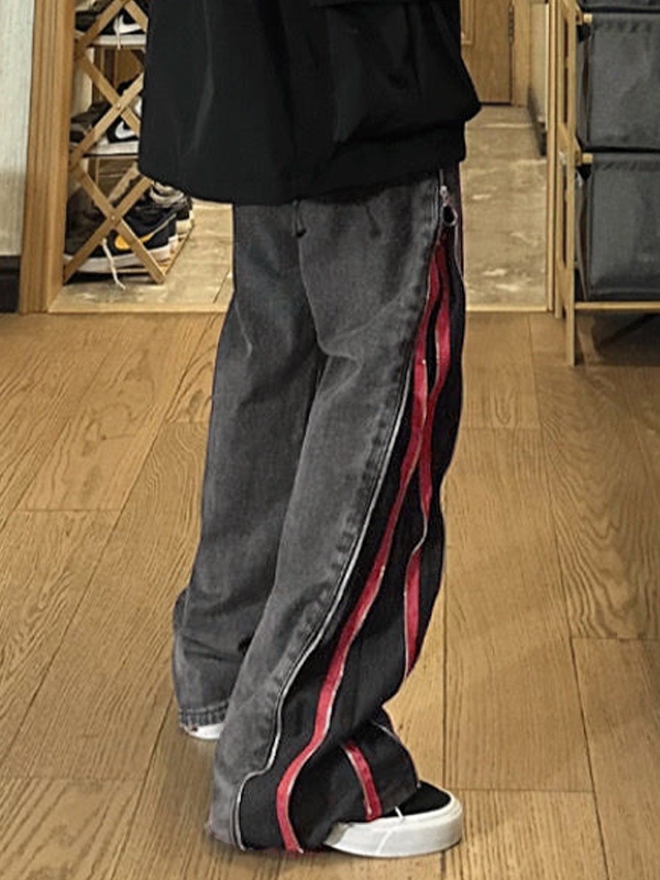/ Contrast Color Side Double Zipper Boyfriend Jeans