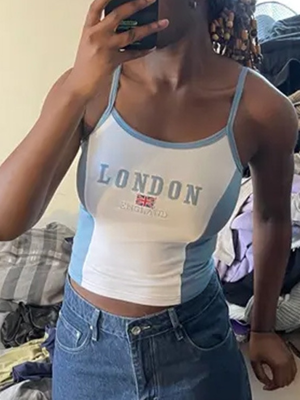 Contrast Color Stitching Letter Print Cami Top quantity