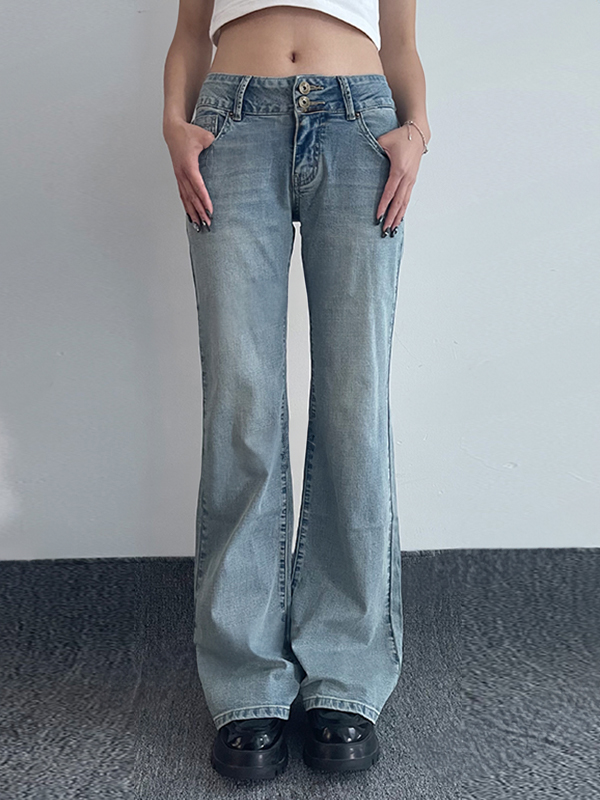 / Double Breasted Low Rise Bootcut Jeans