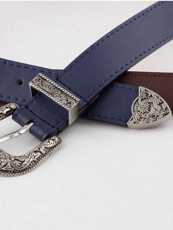 Engraved Metal Embellished Buckle Belt