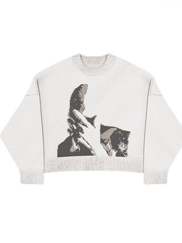 One Shoulder Fake Two Piece Print Long Sleeve Tee