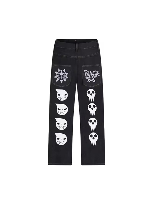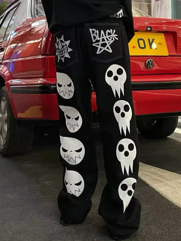 Men’s Letter Patch Embroidery Straight Leg Jeans