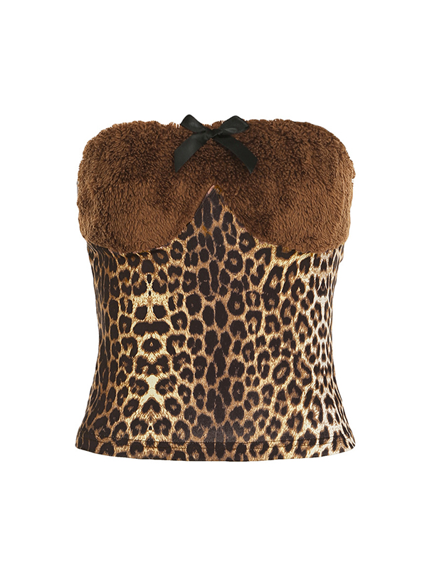 Fluffy Patchwork Chest-Shaped Bow Bandeau Top