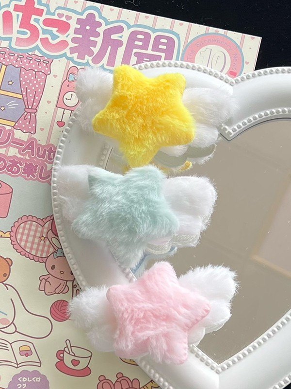 / Fuzzy Winged Star Charm Hair Clip