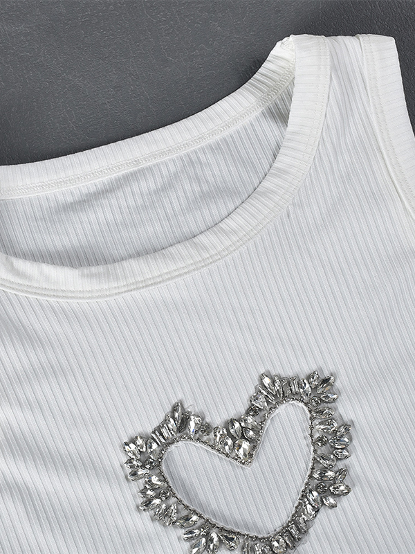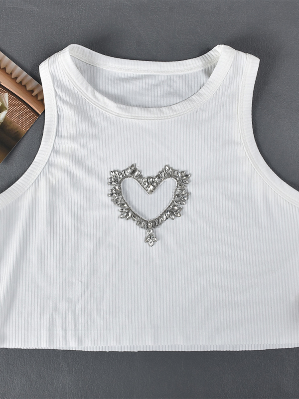 / Heart Shaped Rhinestone Cutout Tank Top