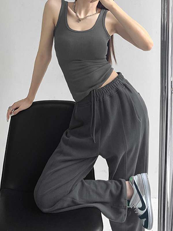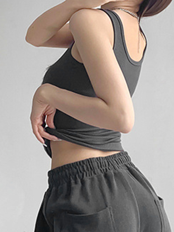 / High Elasticity Solid U Neck Slim Tank Top