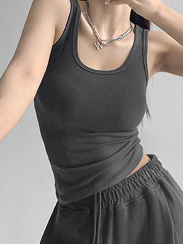 High Elasticity Solid U Neck Slim Tank Top