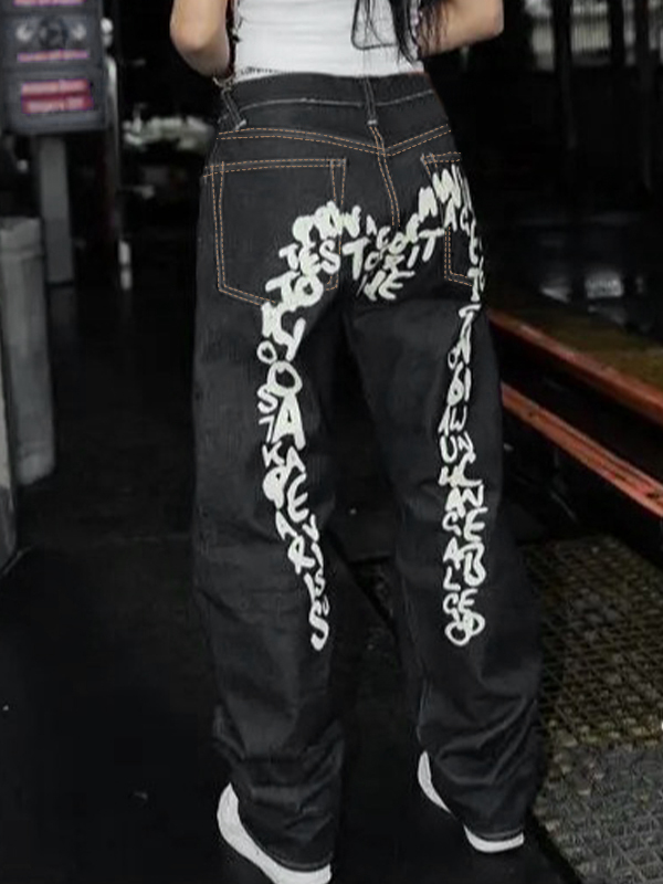 Hip Pop Letter Print Boyfriend Jeans