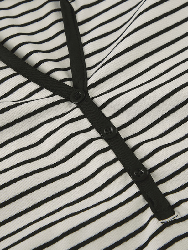 Hooded Striped Loose-Fitting Long-Sleeved Top