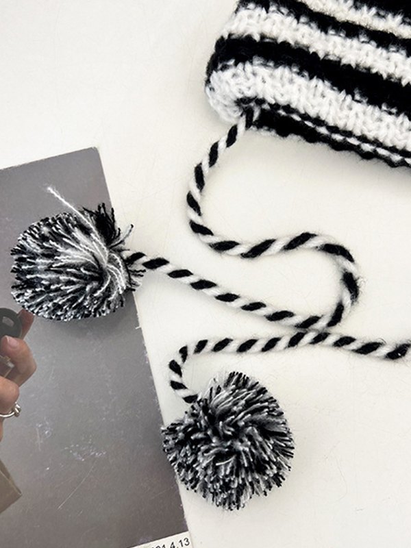 Horn Detail Striped Knitted Hat quantity