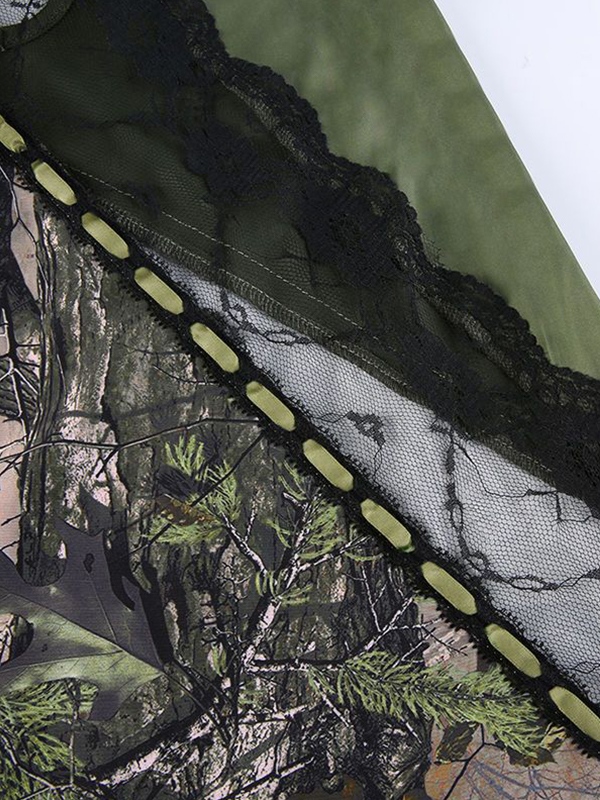 / Irregular Print Lace Splice Tie Back Mini Dress