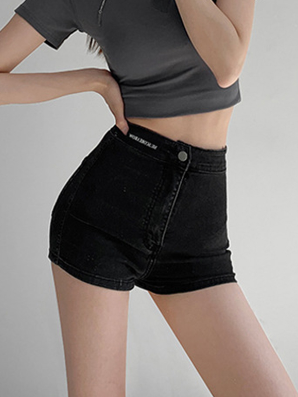 Labeling High Rise Slim Thin Denim Shorts quantity