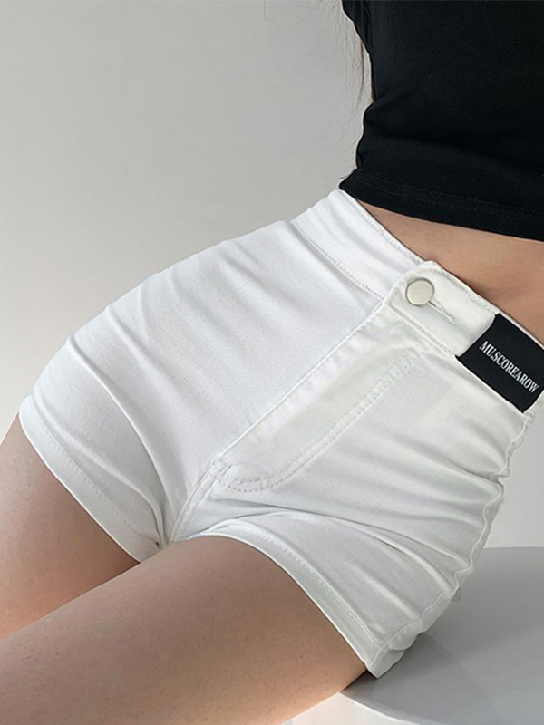 Labeling High Rise Slim Thin Denim Shorts quantity