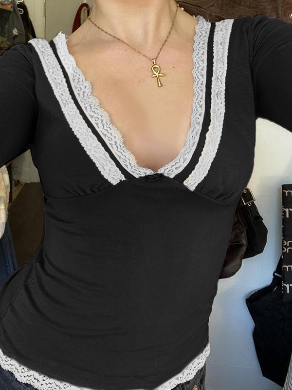 Lace stitching Long Sleeves Tee quantity