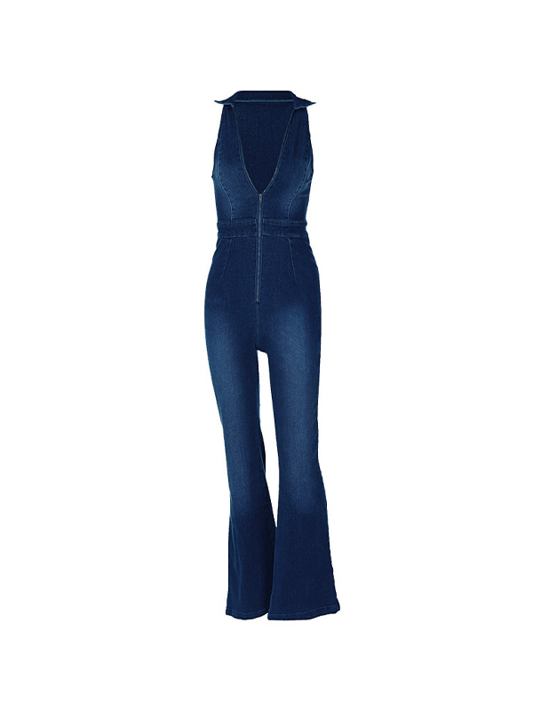 Lapel Neck Backless Zip Up High Rise Jumpsuits