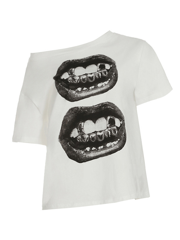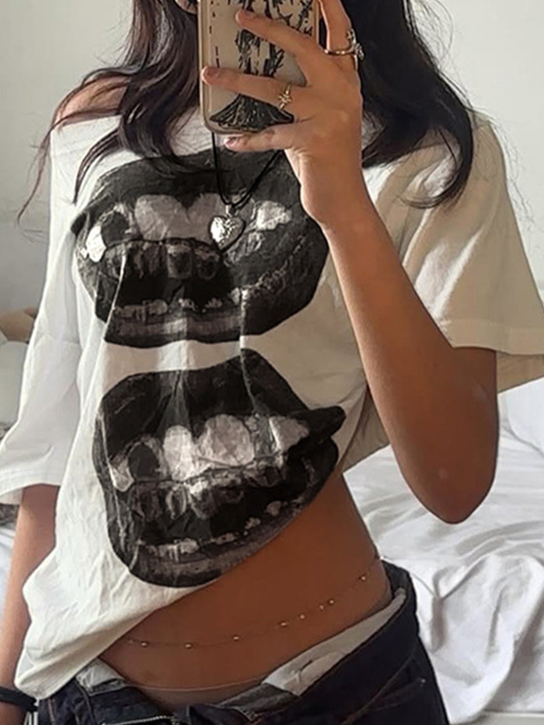 Lips Print Oversized Short Sleeve Tee
