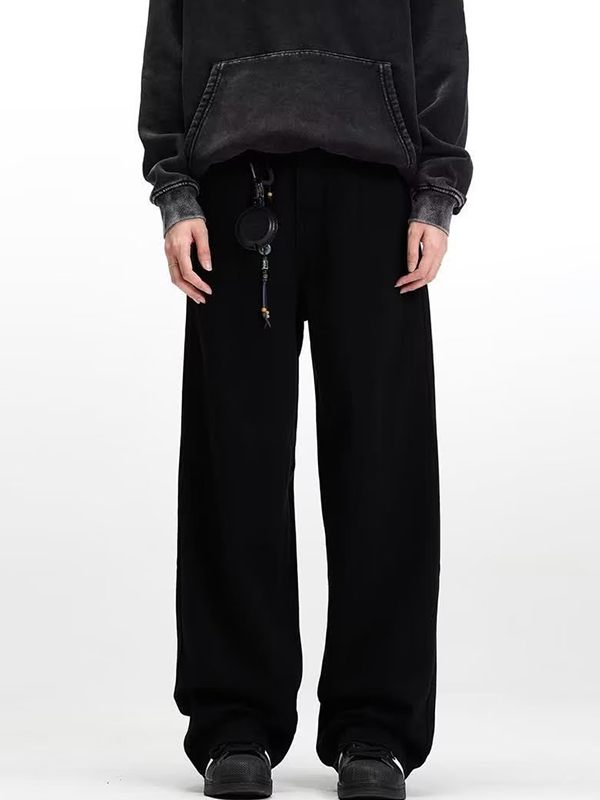 / Men’s Coconut Tree Embroidery Print Drawstring Loose Jeans
