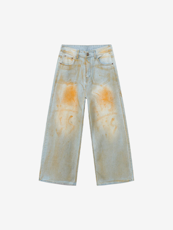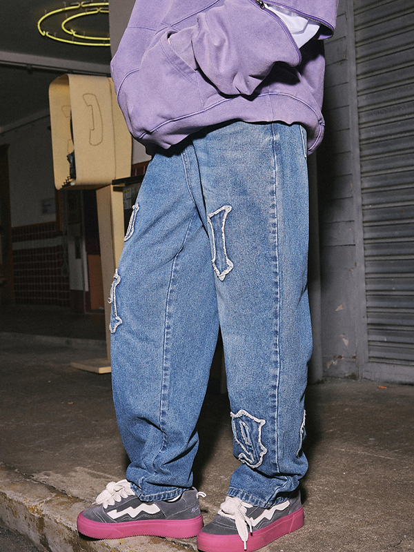 Men’s Letter Patch Embroidery Straight Leg Jeans