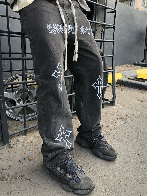 Men’s Cross Print Loose Jeans