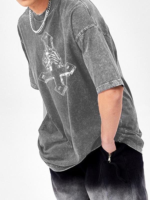 Men’s Cross Print Oversized Short Sleeve Tee