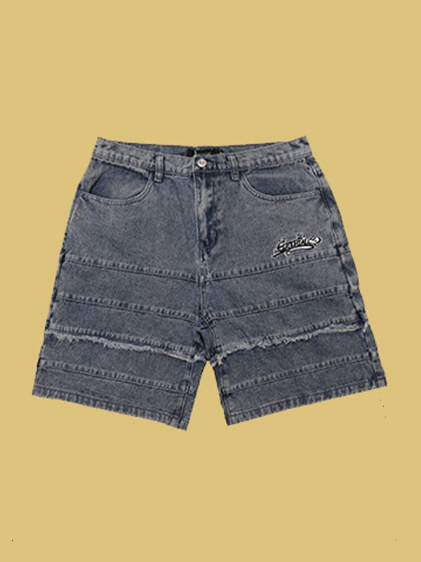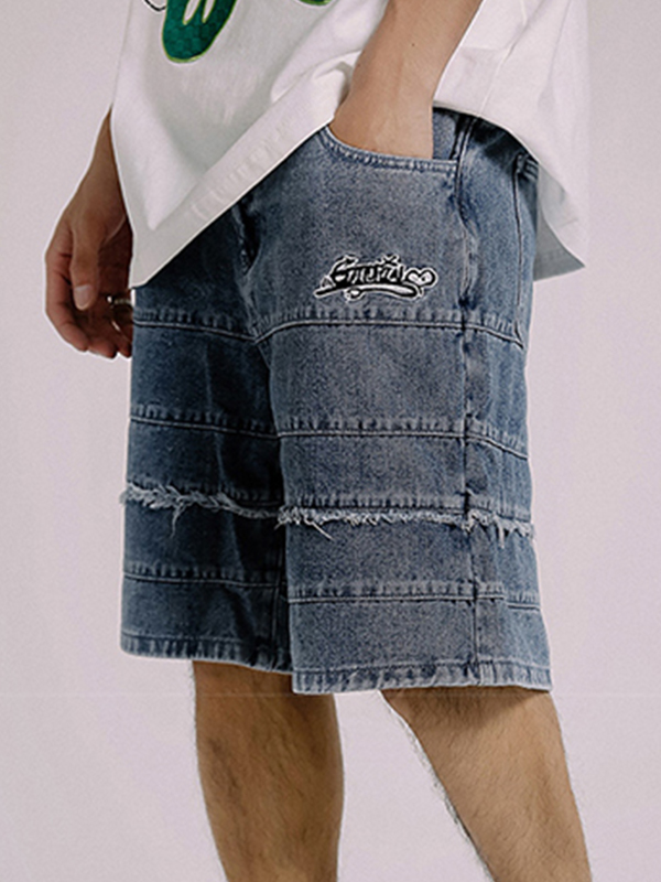 / Men’s Letter Embroidery Casual Denim Shorts