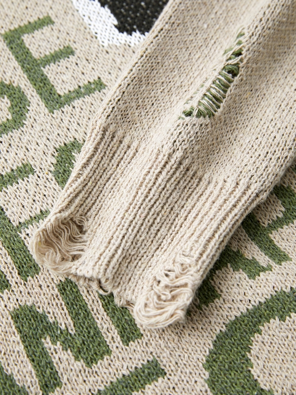 / Men’s Letter Print Ripped Design Sweater
