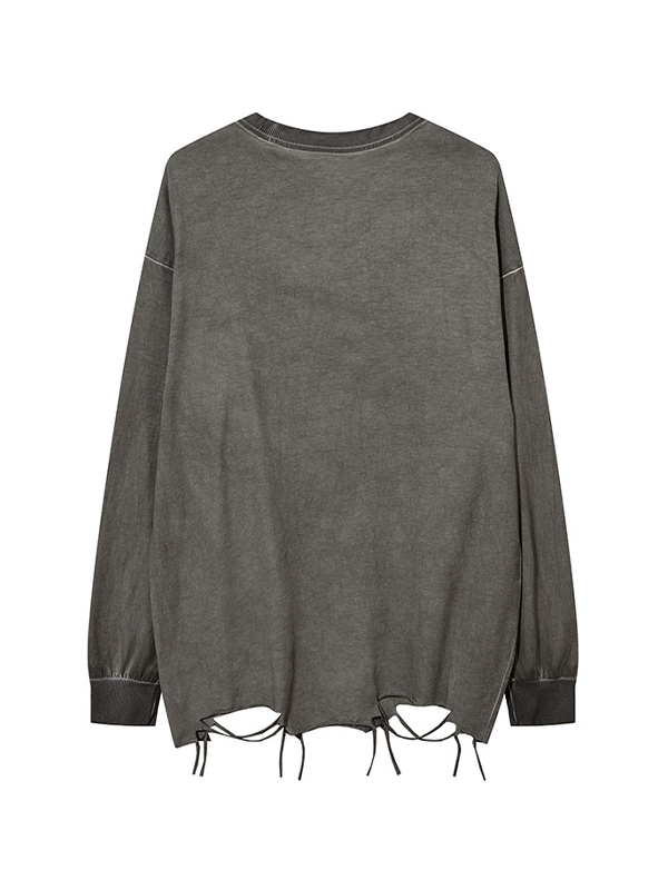 One Shoulder Fake Two Piece Print Long Sleeve Tee