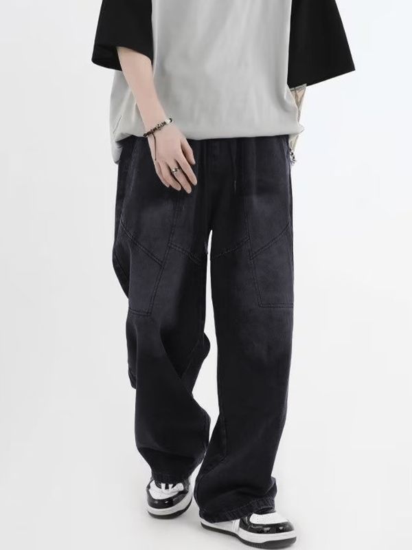 / Men’s Ombre Elastic Waist Drawstring Loose Jeans