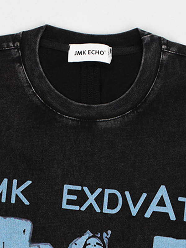 V Neck Star Digital Print Oversized Long Sleeve Tee