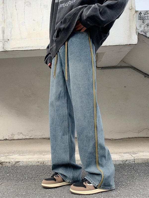Men’s Ombre Elastic Waist Drawstring Loose Jeans