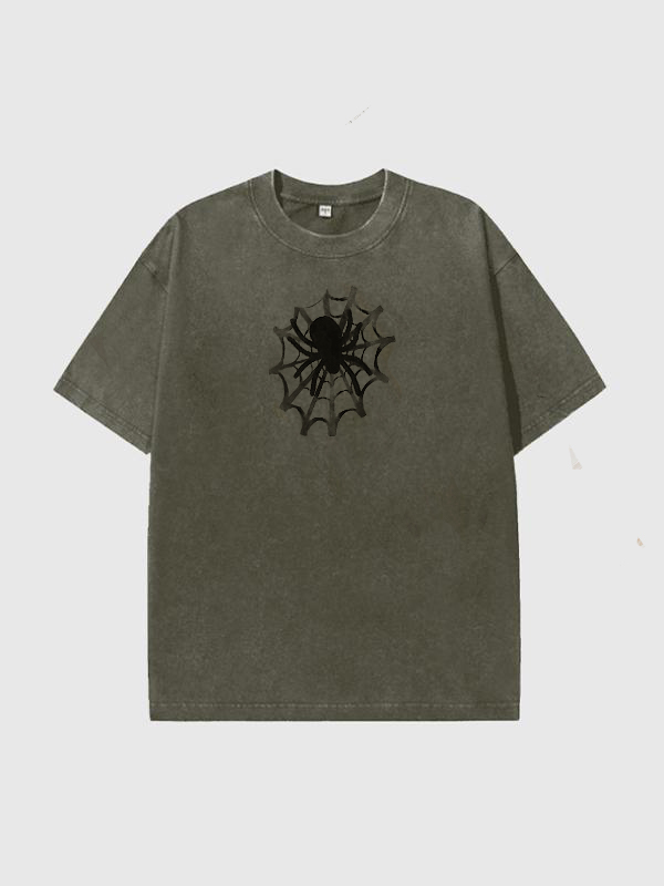 / Men’S Spider Print Washed Oversized Short Sleeve Tee