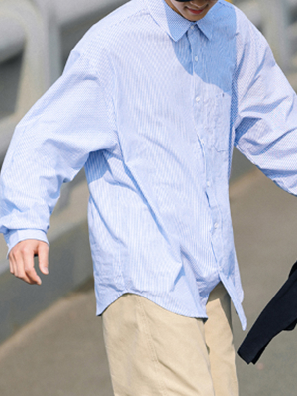 / Men’s Versatile Pinstripe Long Sleeve Blouse