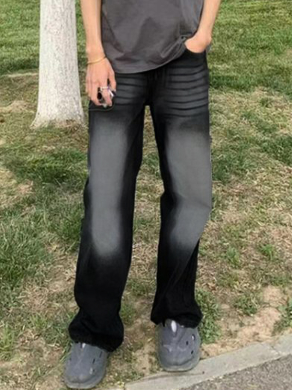 Men’s Vintage Distressed Wash Dangle Straight Leg Jeans