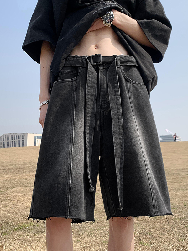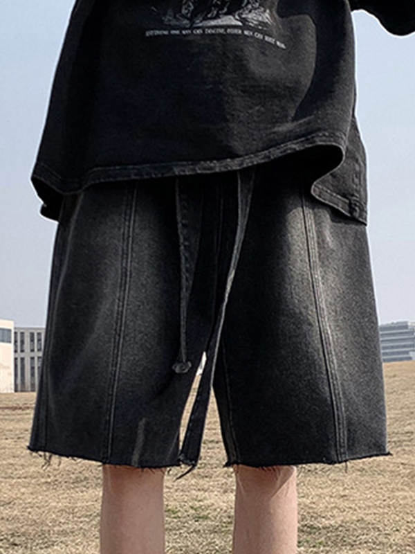 Men’s Wash Frayed Hem Tie Up Shorts