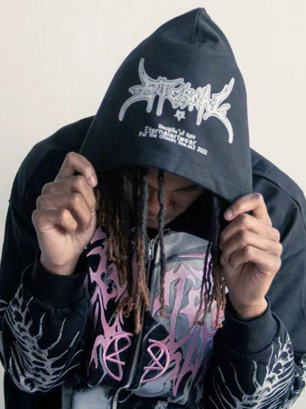/ Men’s Wings Print Oversized Long Sleeve Hoodie