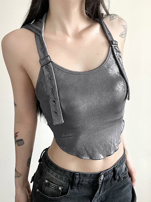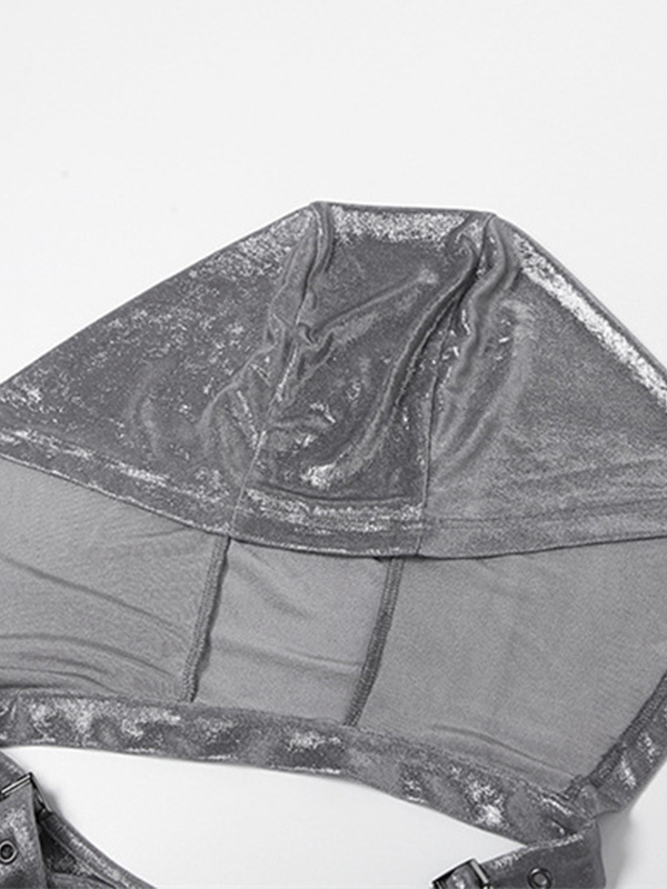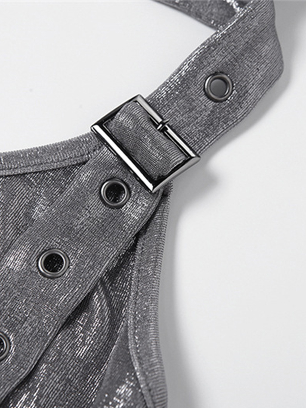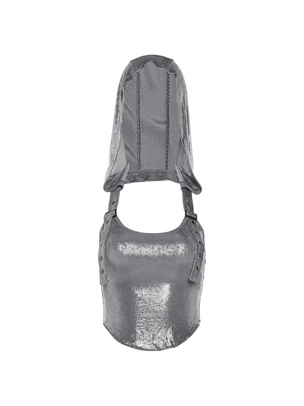 / Metallic Eyelet Buckle Hooded Halter Vest