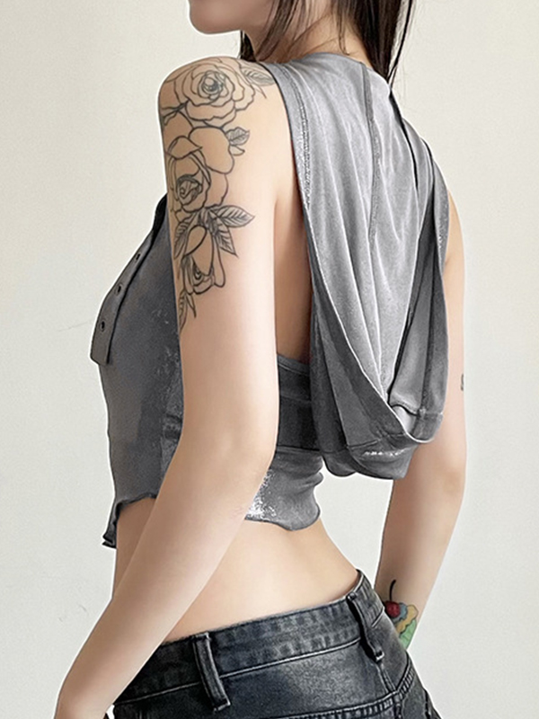 Metallic Eyelet Buckle Hooded Halter Vest quantity